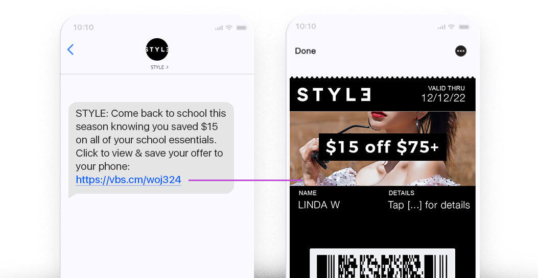 - Personalized Wallet loyalty cards and rewards - Deliver personalized loyalty cards and rewards immediately via SMS to be added to consumers wallets for easy use