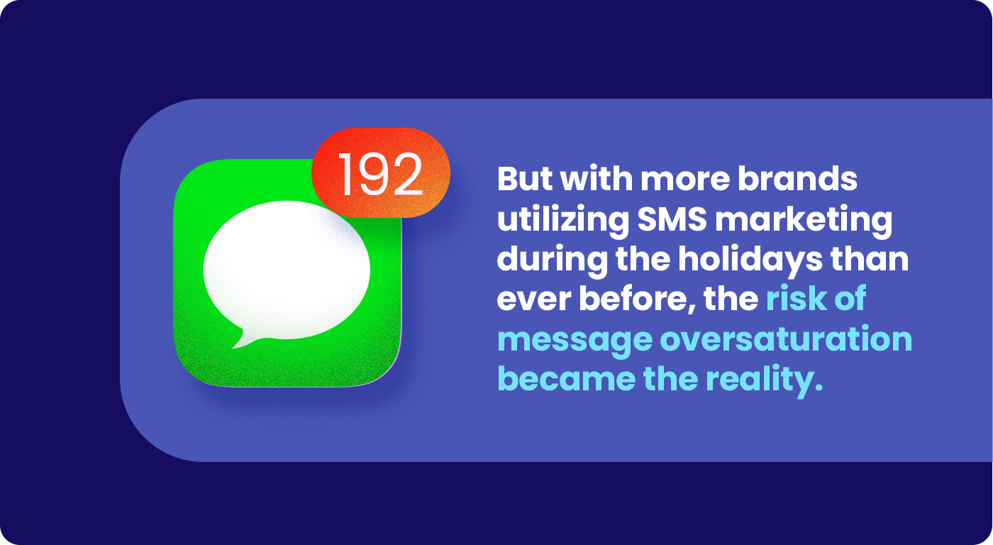 - Another apparel-specific retailer increased their holiday click-thru rates by 22% compared to their holiday SMS messages in 2023 that were not optimized for ideal send days.