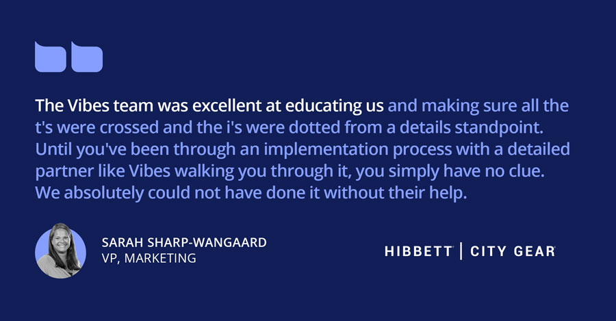 Today, over 80% of Hibbett’s digital customer engagement—purchases included—is conducted through the mobile channel. “Our mobile marketing strategy has matured as the business model at Hibbett has matured, and that has been an exciting journey to be a part of” said Sharp-Wangaard. “Vibes was never afraid to push us to explore new opportunities for growth and revenue-generating ideas. We don’t just want to be seen as best in class in our own vertical, but we want to be seen as a leader in the mobile marketing space in general.”