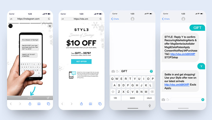 • Instagram and TikTok “Swipe Ups” that link to a webform for consumers to fill out in order to complete their sign up for your mobile program.