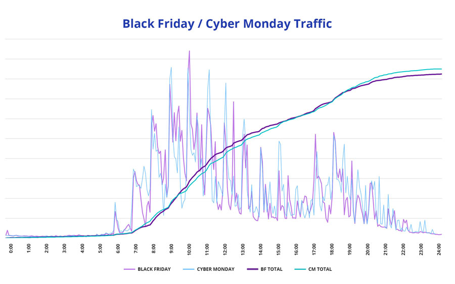 Black Friday and Cyber Monday were the lowest performing days of the week.