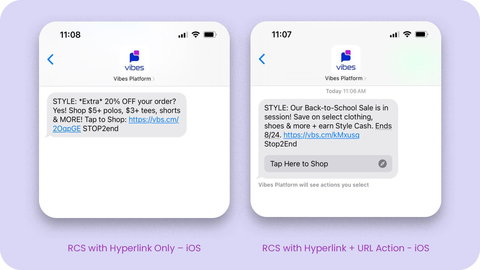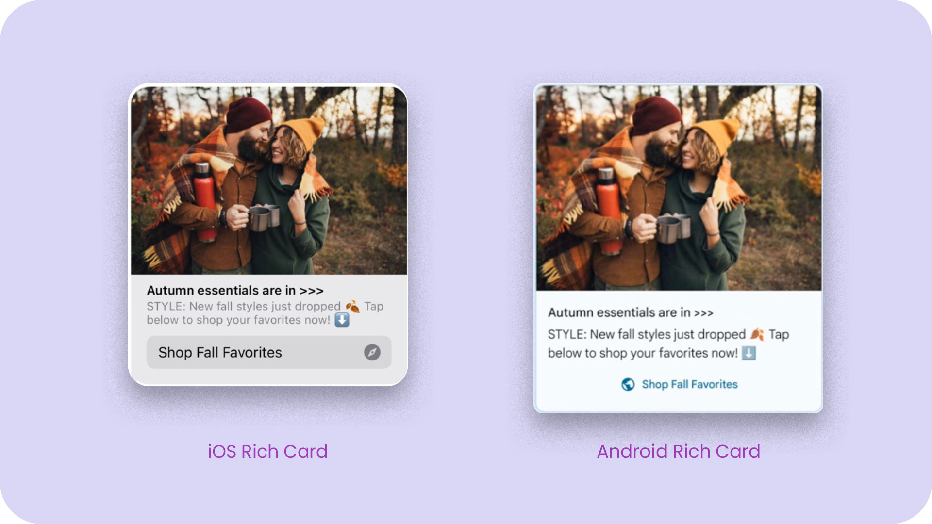 Like most user experiences, RCS takes on a different look and feel whether you're an iOS or an Android user. Read this quick article to not only see a side-by-side breakdown of how it comes to life in both instances, but to also gain some tips and best practices for optimizing your RCS campaigns across both operating systems based on what the data is telling us from our enterprise customers who are already live with - and loving - RCS.