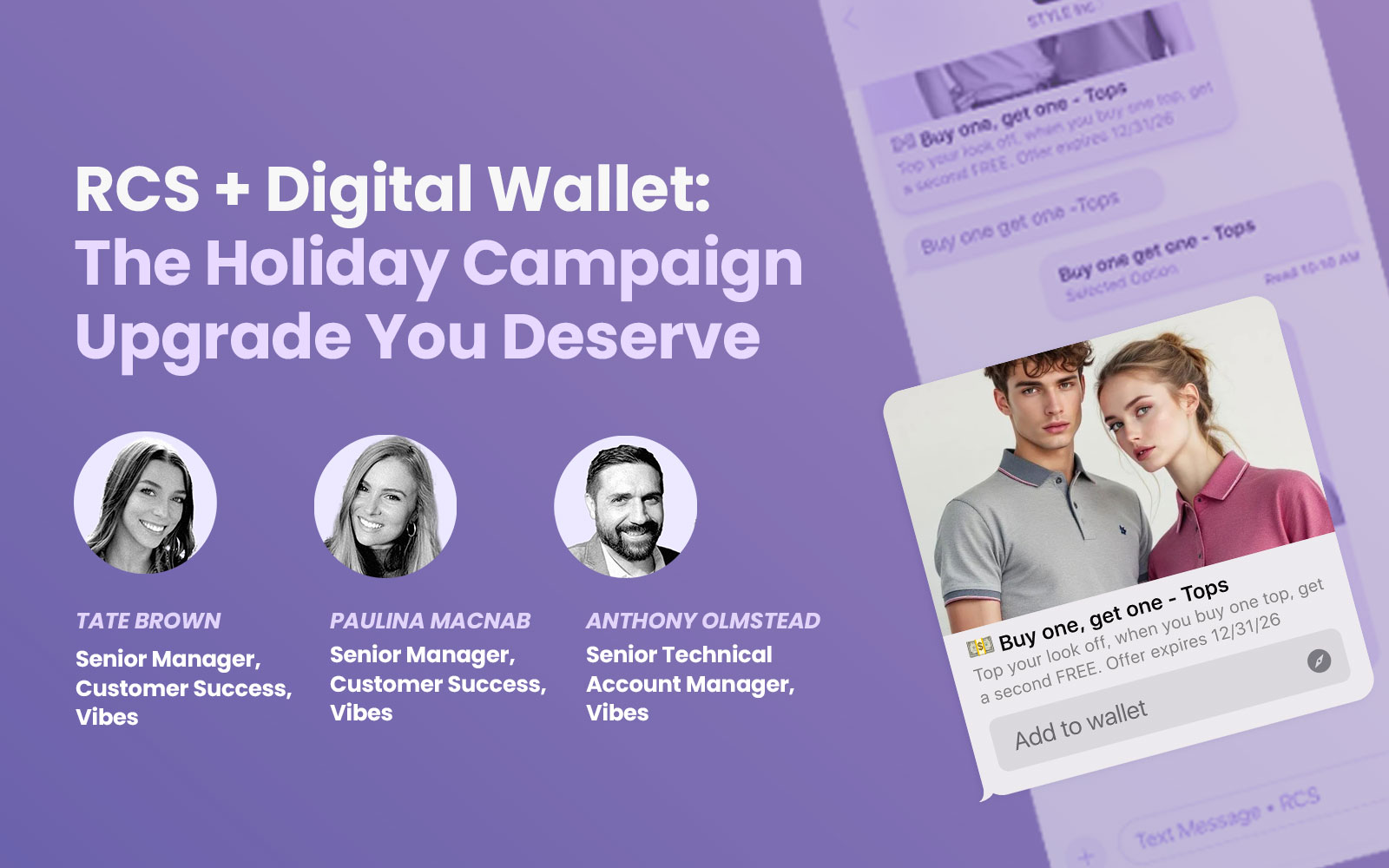 Learn from Vibes messaging experts Rob Charney and Sean Whitley about the latest on short code provisioning times; how toll-free providers often stick their clients in awkward pricing tiers; what Tier 1 aggregation means and why you should care; the importance of compliance expertise and guidance, AND the arrival in North America of RCS, and how to get started.